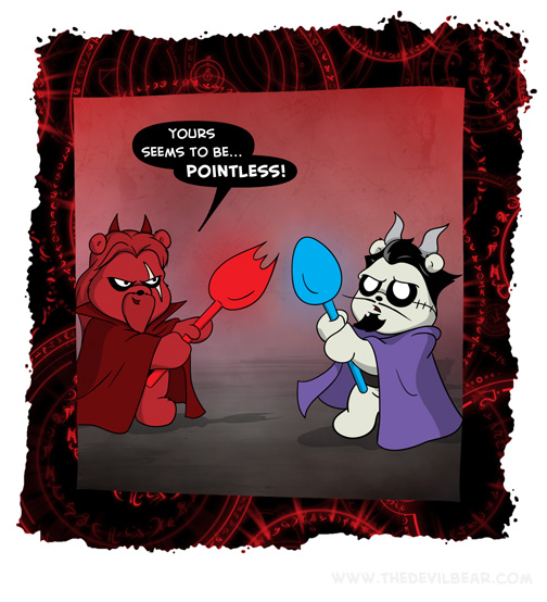 Forked up on February 25, 2021 at 12:01 am Chapter: ShortsCharacters: Bearalzebub, Bearlial └ Tags: devil, Devilbear, funny, hell, humor, spoon, spork, Teddy bear 1 Comment