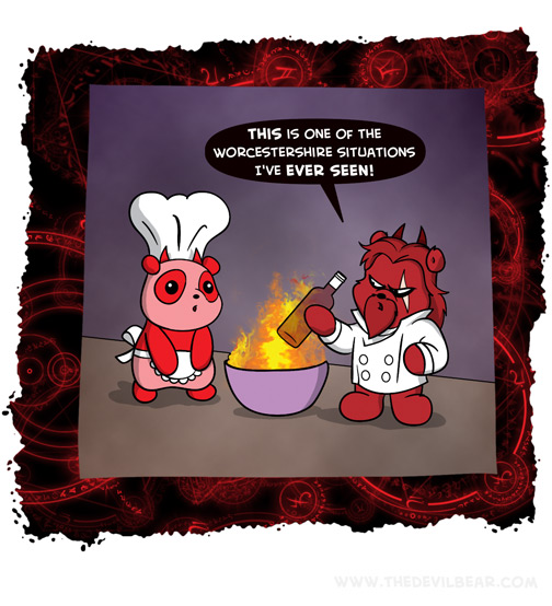 Sauced on July 8, 2025 at 10:32 pm Chapter: ShortsCharacters: Bearalzebub, Pandatchoo └ Tags: baking, cooking, devil, Devilbear, food, funny, hell, humor Comment