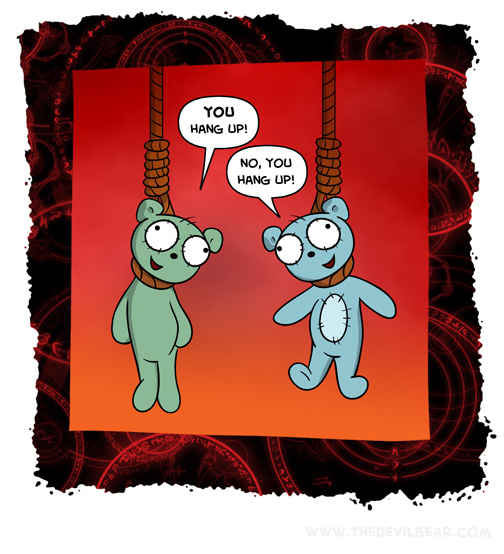 High-strung on September 12, 2022 at 12:01 am Chapter: ShortsCharacters: Teddy bear, Zombie └ Tags: funny, hanging, hell, humor, Teddy bear, torment, torture Comment
