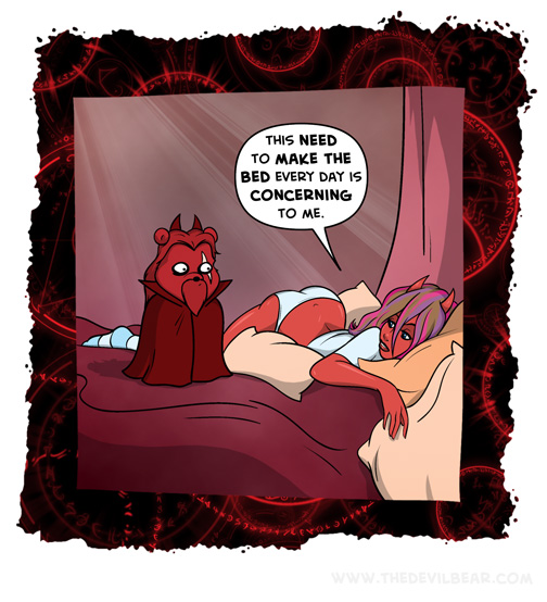 Every day on March 4, 2020 at 12:01 am Chapter: ShortsCharacters: Bearalzebub, Helle Belle └ Tags: bed, daiva, devil, Devilbear, devilgirl, funny, hell, lazy, sleep, Teddy bear 1 Comment