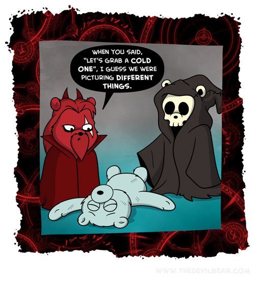 Outing on July 18, 2024 at 12:01 am Chapter: ShortsCharacters: Bearalzebub, Death └ Tags: beer, death, devil, Devilbear, funny, hell, humor, Teddy bear 2 Comments