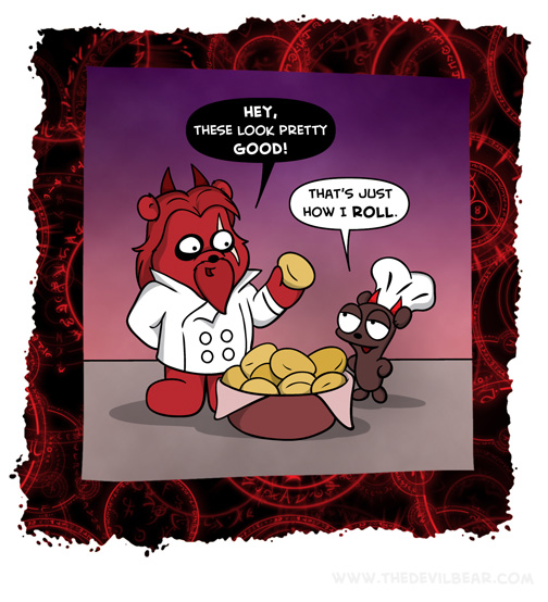 Rolling on May 18, 2021 at 12:01 am Chapter: ShortsCharacters: Bearalzebub └ Tags: baking, bread, cooking, devil, Devilbear, food, funny, hell, humor, roll, Teddy bear Comment