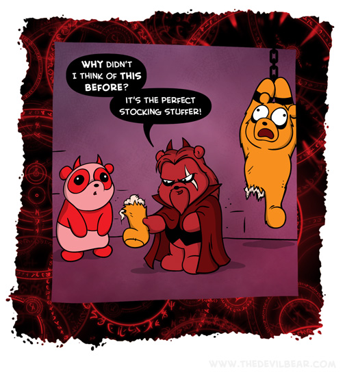 Leg day on December 7, 2020 at 12:01 am Chapter: ShortsCharacters: Bearalzebub, Pandatchoo, Teddy bear └ Tags: christmas, devil, Devilbear, hell, humor, stocking, Teddy bear, torment, torture Comment