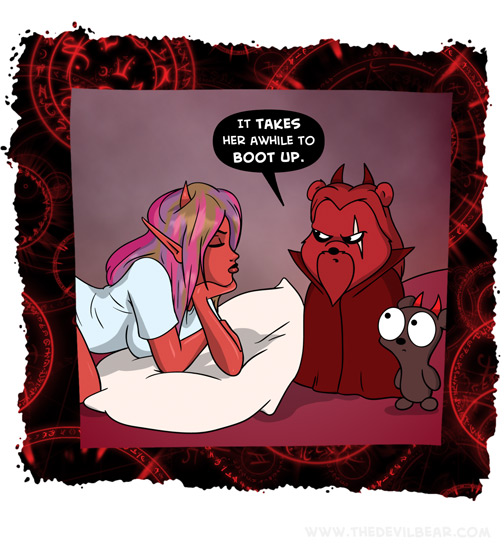 Slow on January 29, 2025 at 12:01 am Chapter: ShortsCharacters: Bearalzebub, Helle Belle, Teddy bear └ Tags: bed, computer, daiva, devil, Devilbear, devilgirl, funny, hell, humor, lazy, sleep 2 Comments