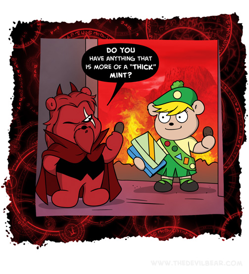 Cookies on February 21, 2022 at 12:03 am Chapter: ShortsCharacters: Bearalzebub, Teddy bear └ Tags: cookies, devil, Devilbear, food, funny, girl scout, hell, humor, Teddy bear 1 Comment