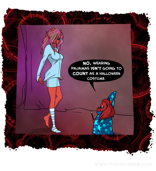 Lazy disguise on October 21, 2019 at 12:00 am Chapter: ShortsCharacters: Bearalzebub, Helle Belle └ Tags: costume, daiva, devil, Devilbear, devilgirl, halloween, hell, lazy, pajamas, Teddy bear 2 Comments
