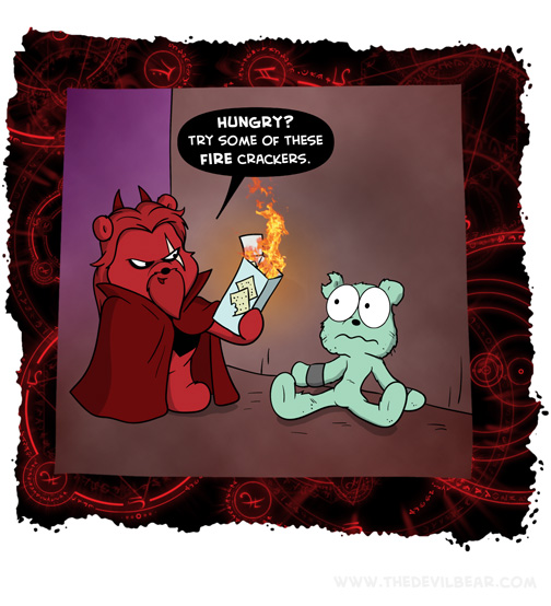 Salty on August 31, 2021 at 12:01 am Chapter: ShortsCharacters: Bearalzebub, Teddy bear └ Tags: baking, cooking, crackers, devil, Devilbear, funny, hell, humor, Teddy bear, torment, torture Comment