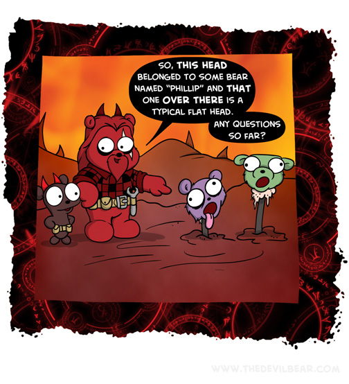 Headed off on August 22, 2019 at 12:26 am Chapter: ShortsCharacters: Bearalzebub └ Tags: comic, decapitation, devil, Devilbear, funny, hell, impaled, Teddy bear 3 Comments