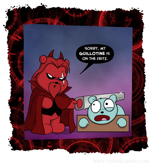 Alternative on January 20, 2022 at 12:01 am Chapter: ShortsCharacters: Bearalzebub, Teddy bear └ Tags: decapitation, devil, Devilbear, execution, funny, guillotine, hell, humor, saw, Teddy bear, torment, torture Comment