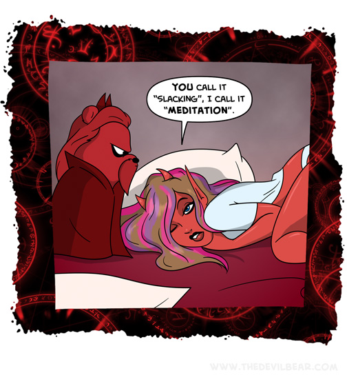 └ Tags: bed, daiva, devil, Devilbear, devilgirl, funny, hell, humor, lazy, meditation, nap