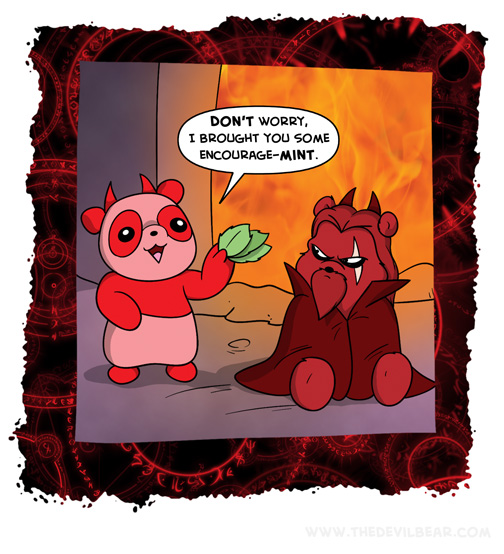 Fresh on August 10, 2021 at 12:01 am Chapter: ShortsCharacters: Bearalzebub, Pandatchoo └ Tags: baking, cooking, devil, Devilbear, funny, hell, humor, mint, panda, Teddy bear Comment