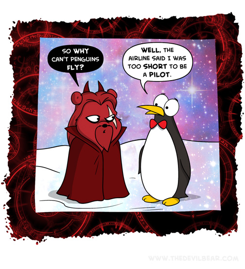 Flight risk on December 12, 2022 at 1:24 am Chapter: ShortsCharacters: Bearalzebub, Jeeves └ Tags: devil, Devilbear, flying, funny, hell, humor, penguin 2 Comments