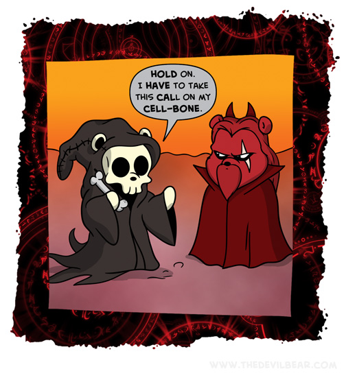 Caller Bone on May 16, 2024 at 12:01 am Chapter: ShortsCharacters: Bearalzebub, Death └ Tags: death, devil, Devilbear, funny, hell, humor, phone Comment