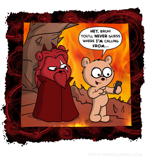 Hell Phone on January 8, 2024 at 12:01 am Chapter: ShortsCharacters: Bearalzebub, Teddy bear └ Tags: devil, Devilbear, funny, hell, humor, phone, smartphone, Teddy bear 1 Comment