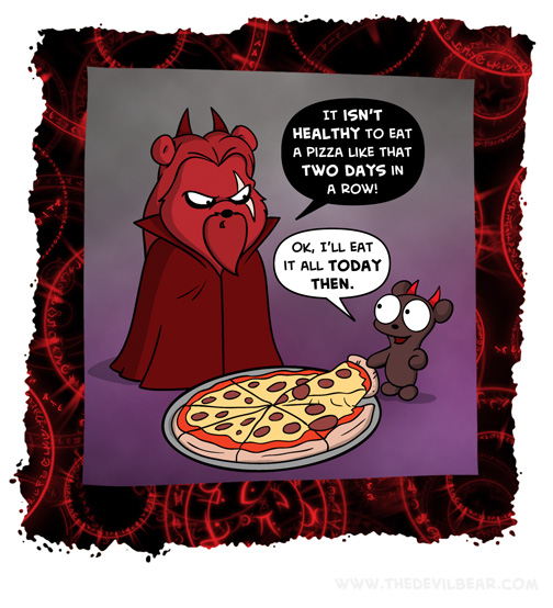 Twice on April 25, 2023 at 12:01 am Chapter: ShortsCharacters: Bearalzebub, Teddy bear └ Tags: baking, cooking, devil, Devilbear, food, funny, hell, humor, pizza, Teddy bear 5 Comments