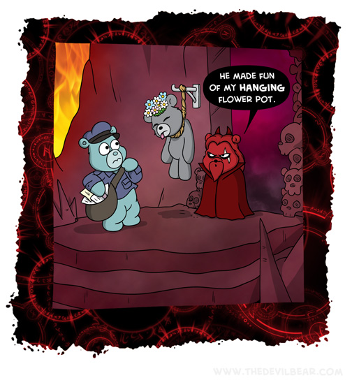 └ Tags: comic, death, devil, Devilbear, flower pot, flowers, hell, humor, mailman, popular, postal, soul, Teddy bear, torment, torture