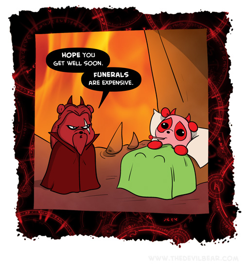 Ailing on July 23, 2020 at 12:01 am Chapter: ShortsCharacters: Bearalzebub, Pandatchoo └ Tags: death, devil, Devilbear, funny, hell, sick, Teddy bear 2 Comments