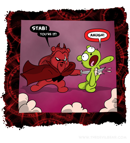 Tagged and bagged on April 19, 2021 at 12:01 am Chapter: ShortsCharacters: Bearalzebub, Teddy bear └ Tags: devil, Devilbear, funny, hell, humor, stab, tag, Teddy bear, torment, torture Comment