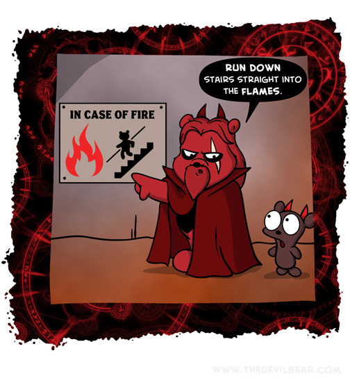 Emergency on October 9, 2023 at 12:01 am Chapter: ShortsCharacters: Bearalzebub, Teddy bear └ Tags: devil, Devilbear, fire, funny, hell, humor, stairs, Teddy bear Comment