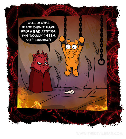 Negativity on July 25, 2019 at 12:00 am Chapter: ShortsCharacters: Bearalzebub └ Tags: attitude, chains, comic, devil, Devilbear, fire, hell, hot, torment, torture Comment