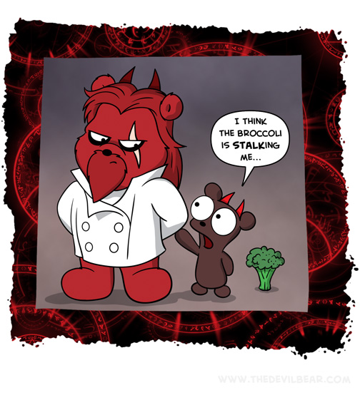 Stalker on October 8, 2024 at 12:01 am Chapter: ShortsCharacters: Bearalzebub, Teddy bear └ Tags: broccoli, devil, Devilbear, food, funny, hell, humor, Teddy bear, vegetable Comment