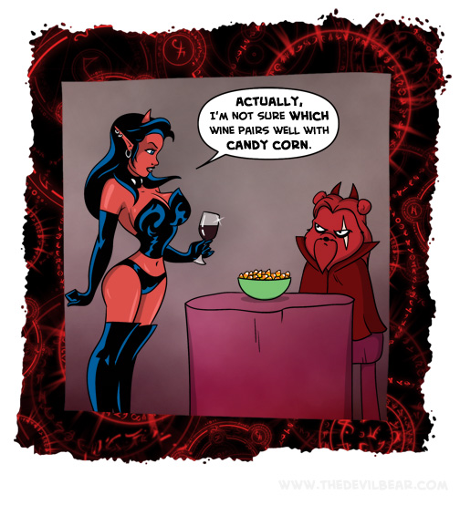 Hallowine on October 21, 2021 at 12:01 am Chapter: ShortsCharacters: Bearalzebub, Lucy └ Tags: candy, devil, Devilbear, devilgirl, food, funny, halloween, humor, Teddy bear, wine 1 Comment